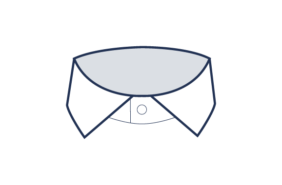Like the name suggests, this collar is halfway between our classic collar and our cutaway collar. We use the semi-cutaway collar mostly on our business casual shirts because it’s so easy to dress up or down. If you choose to wear a tie, opt for a larger knot like a half or full Windsor, since the wider spread of the semi-cutaway collar means more of your tie knot will be visible.