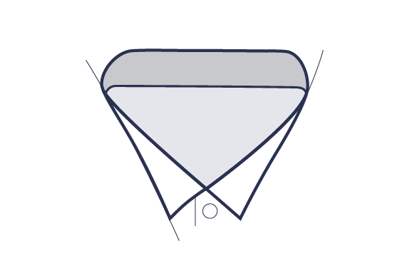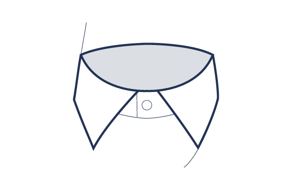The extreme cutaway collar is our most widespread collar, with tips cut away and facing towards the shoulders rather than down. It particularly suits those with narrow faces, as the longer collar points can balance out a gent’s proportions. Pair this collar with a slim tie and a small tie knot.
