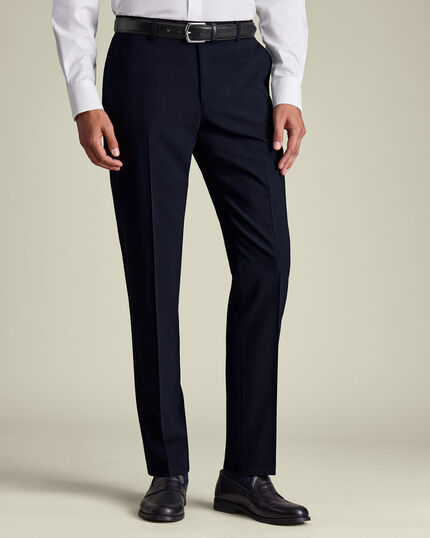Check Suit Trousers - Navyhttps://www.charlestyrwhitt.com/on/demandware.static/-/Sites-ctshirts-master/default/dw36212779/hi-res/SUB0616NAV_TROUSER_FRONT.jpgSUB0616NAVWith their fine details and sleek silhouettes, our seasonal design suits are as polished as they come. The durable wool-rich fabric includes added stretch for an ultra-flattering fit. We've cut the jackets to modern single-breasted profiles with two-button fastenings and smart four-button cuffs. AMF stitching and Bengal stripe sleeve linings bring refined touches. The flat-fronted trousers are lined to the knee, while the waistcoat accompanying the ink-blue check suit features functional welt pockets for your essentials.https://www.charlestyrwhitt.com/uk/check-suit-trousers---navy/SUB0616NAV.htmlGBP110.00InStock54