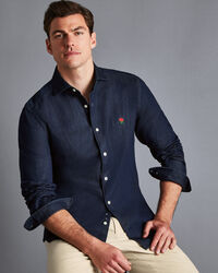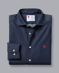 England Rugby Denim Shirt - Denim Bluehttps://www.charlestyrwhitt.com/on/demandware.static/-/Sites-ctshirts-master/default/dw202307e9/hi-res/CSQ0033DEN_COLLAR_DETAIL.jpgCSQ0033DENWe have your match days sorted with our denim England Rugby shirt, crafted from heavyweight twill cotton with a hint of stretch. Before embroidering the iconic red rose on the chest, we garment-washed the fabric for a supremely soft feel to this shirt. Heading to the game? Keep your look comfy and casual by pairing your shirt with chinos or jeans.https://www.charlestyrwhitt.com/uk/england-rugby-denim-shirt---denim-blue/CSQ0033DEN.htmlGBP24.95OutOfStock4.806
