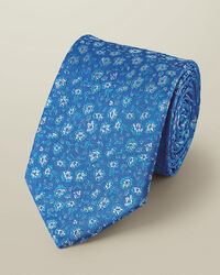 Floral Silk Tie - Cornflower Bluehttps://www.charlestyrwhitt.com/on/demandware.static/-/Sites-ctshirts-master/default/dw9319cedc/hi-res/TIL0658CFW_ROLLED.jpgTIL0658CFWAdd refinement to your outfit with an elegant tie spun from pure silk. Each one features a lustrous canvas that makes their patterns pop. Plus, every tie is hand-finished and thoughtfully detailed. This is how you take your look to the next level.