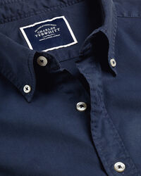 Garment Dyed Fine Twill Shirt - Navyhttps://www.charlestyrwhitt.com/on/demandware.static/-/Sites-ctshirts-master/default/dw74d1a084/hi-res/CSR0926NAV_COLLAR_DETAIL.jpgCSR0926NAVEnjoy unbeatable comfort when you slip on our new twill shirt. We've treated the fine, lightweight fabric to a garment wash – creating a relaxed feel and look – then added a peached finish for extra softness. This easy-to-wear style comes in classic colours, as well as the season's sought-after shades. A button-down collar leans into informality, while our recognisable lapwing embroidery adds a finishing flourish.https://www.charlestyrwhitt.com/uk/garment-dyed-fine-twill-shirt---navy/CSR0926NAV.htmlGBP24.95OutOfStock00