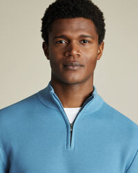 Honeycomb Cotton Half Zip Jumper - Ocean Bluehttps://www.charlestyrwhitt.com/on/demandware.static/-/Sites-ctshirts-master/default/dw18444e5c/hi-res/CT/KNT0002OCE_MODEL_FRONT.jpgKNT0002OCEIt's knitwear but not as you know it. Our cotton jumpers are ideal for transitional layering with their lightweight yet warming fabric. These must-have knitwear pieces add luxurious texture to your ensembles with their honeycomb finishes and ultimate softness to your style. Our collection includes styles that you can wear on their own or over your favourite T-shirts.https://www.charlestyrwhitt.com/uk/honeycomb-cotton-half-zip-jumper---ocean-blue/KNT0002OCE.htmlGBP69.95InStock4.7021