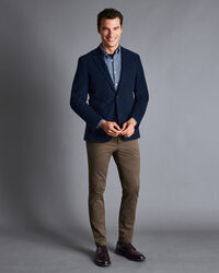 Italian Moleskin Jacket - Ink Bluehttps://www.charlestyrwhitt.com/on/demandware.static/-/Sites-ctshirts-master/default/dw349f8561/hi-res/SEF0275NKB_MODEL_FRONT.jpgSEF0275NKBThe premium fabric is woven by the Maselli family in Italy's renowned Emmetex mill. They've used sustainably sourced cotton with a touch of elastane, which has been sheared for that luxurious moleskin feel.The result is a versatile, year-round jacket that retains warmth while remaining breathable. That dash of stretch ensures the slim-fitting jacket holds its impeccable cut, too. We've added our signature styling: AMF stitching on the notch lapel and flap pockets, plus four-button kissing cuffs.https://www.charlestyrwhitt.com/uk/italian-moleskin-jacket---ink-blue/SEF0275NKB.htmlGBP149.00OutOfStock00