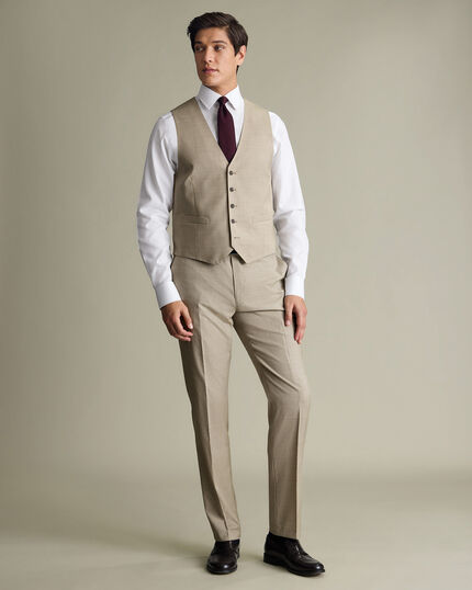 Italian Puppytooth Waistcoat - Taupe https://www.charlestyrwhitt.com/on/demandware.static/-/Sites-ctshirts-master/default/dw03cc68c8/SUL/SUL0415TPE/SUL0415TPE_MODEL_WAISTCOAT.jpg SUL0415TPE It's made from wool-rich fabric infused with stretch so you can move around with ease. The jacket is cut to a single-breasted silhouette and features a half canvas chest piece for a more well-defined fit. We’re all about the details – that’s why we’ve given the trousers a curved waistband with a handy grip to keep your shirt tucked in. Inside, you'll spot our exclusive lapwing lining. https://www.charlestyrwhitt.com/uk/italian-puppytooth-waistcoat---taupe/SUL0415TPE.html GBP 109.00 InStock 0 0