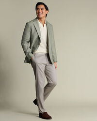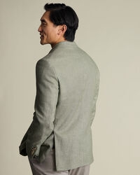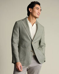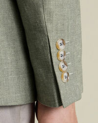 Linen Cotton Jacket - Sage Greenhttps://www.charlestyrwhitt.com/on/demandware.static/-/Sites-ctshirts-master/default/dw0d188d0b/SES/SES0010SGE/SES0010SGE_MODEL_FRONT_01.jpgSES0010SGEThe natural fibres of this linen-cotton jacket lend it a relaxed look, as do the lack of shoulder pads and the lighter chest canvas. It's a smart-casual staple with a double - vented back hem for easy movement. . The notch lapels and four kissing cuff buttons are sharp details, and internally, there's a lower pocket as well as two breast ones.https://www.charlestyrwhitt.com/uk/linen-cotton-jacket---sage-green/SES0010SGE.htmlGBP229.00InStock00