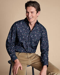 Made With Liberty Fabric Floral Print Semi-Cutaway Collar Shirt - Navyhttps://www.charlestyrwhitt.com/on/demandware.static/-/Sites-ctshirts-master/default/dwa9807c41/CSB0236NAV_COLLAR_DETAIL.jpgCSB0236NAVThe poplin weave of these shirts is casually lightweight for suppleness and ease of wear. Made from 100% cotton, the 2-ply 100s yarn is considered a 'superfine' material that's crafted with maximum comfort in mind. We've used a split-back yoke so the shirt rests easily on your neck and shoulders. And, with sizes ranging from S-XXXL, you can even size up or down to achieve the optimal fit.https://www.charlestyrwhitt.com/uk/made-with-liberty-fabric-floral-print-semi-cutaway-collar-shirt---navy/CSB0236NAV.htmlGBP49.95InStock4.70212