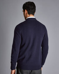 When the weather cools, make our hybrid bomber jacket your go-to outer layer. It's crafted from extra-fine Merino wool for natural breathability and warmth, as well as a refined appearance. We've garment washed it for an exceptionally soft and luxurious feel. The dark navy shade ensures this jumper-meets-jacket looks classic, while quilting on the front is a contemporary twist. Zip it up to the top to stay cosy, allowing just the right amount of your tailored shirt to peek out from underneath.
