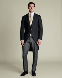 Morning Suit Tail Coat - Black Herringbonehttps://www.charlestyrwhitt.com/on/demandware.static/-/Sites-ctshirts-master/default/dw02a7f041/hi-res/TAILORING/CT/SUW0023BLK_JACKET_FRONT.jpgSUW0023BLKOur morning suits are woven in a herringbone design that will never go out of style. The wool has a subtle sheen, while its naturally breathable properties keep you comfortable all day (and if we're talking weddings, that can be rather a long day).https://www.charlestyrwhitt.com/uk/morning-suit-tail-coat---black-herringbone/SUW0023BLK.htmlGBP379.00InStock4.502