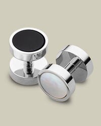 Mother of Pearl and Onyx Evening Studs - Silver https://www.charlestyrwhitt.com/on/demandware.static/-/Sites-ctshirts-master/default/dwd723c76f/hi-res/ACCESSORIES/CT/CLL0049SLV_MAIN-2.jpg ACL0065SLV Cut to a round silhouette and engraved with our iconic logo, they’re presented in a smart box, making them a great gift option as well as a treat to yourself.  https://www.charlestyrwhitt.com/uk/mother-of-pearl-and-onyx-evening-studs---silver/ACL0065SLV.html GBP 59.95 InStock 4.80 6