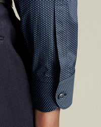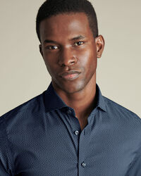 Non-Iron Performance Twill Geo Print Shirt - Petrol Blue https://www.charlestyrwhitt.com/on/demandware.static/-/Sites-ctshirts-master/default/dwcc7a25d7/hi-res/FOB0816PET_COLLAR_DETAIL.jpg FOB0816PET We've used more sustainable yarns, including 41% GRS-certified recycled nylon, to create this cotton-rich blend. You'll notice the exceptional quality of the twill weave, with its smooth handfeel, and appreciate the movement of added stretch and a split back yoke. The lightweight and breathable fabric is ready to make warm days comfortable, thanks to naturally moisture-wicking properties. For a relaxed feel, we've opted for single-button, rounded cuffs and a semi-cutaway collar with lightweight interlining, plus our non-iron finish (of course). https://www.charlestyrwhitt.com/uk/non-iron-performance-twill-geo-print-shirt---petrol-blue/FOB0816PET.html GBP 27.95 InStock 4.80 11