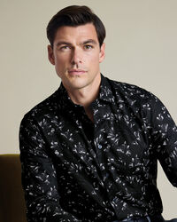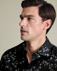 Non-Iron Stretch Floral Print Shirt - Black £74.95