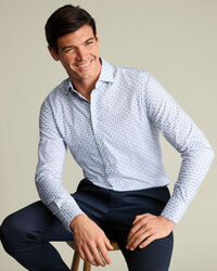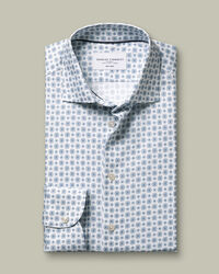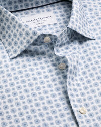 Non-Iron Stretch Print Shirt – White & Blue £74.95