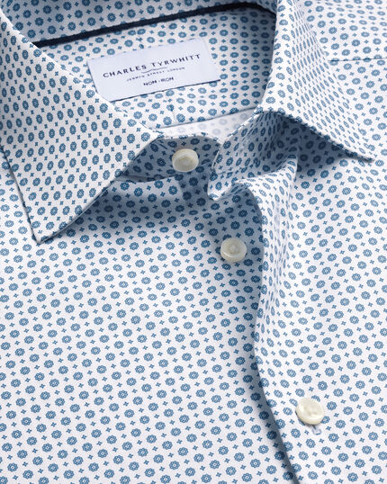 details about product: Non-Iron Stretch Print Shirt – White & Blue