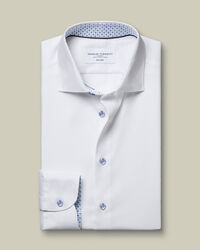 Non-Iron Stretch Printed Trim Shirt – White https://www.charlestyrwhitt.com/on/demandware.static/-/Sites-ctshirts-master/default/dw1c2f9f16/SCS/SCS0096WHT/SCS0096WHT_MODEL_DETAIL_03.jpg SCS0096WHT We've crafted our non-iron shirt from soft and comfortable pure cotton with a breathable weave. Its semi-cutaway collar comes with complimentary stays and can be worn with or without a tie. A split back yoke makes movement easy. For subtle contrast, we've added an eye-catching print inside the collar and cuffs. Wear yours with our ultimate chinos and classic brogues when it's time for a post-work dinner date. https://www.charlestyrwhitt.com/uk/non-iron-stretch-printed-trim-shirt-%E2%80%93-white/SCS0096WHT.html GBP 74.95 InStock 0 0