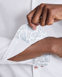 We've crafted our non-iron shirt from soft and comfortable pure cotton with a breathable weave. Its semi-cutaway collar comes with complimentary stays and can be worn with or without a tie. A split back yoke makes movement easy. For subtle contrast, we've added an eye-catching print inside the collar and cuffs. Wear yours with our ultimate chinos and classic brogues when it's time for a post-work dinner date.