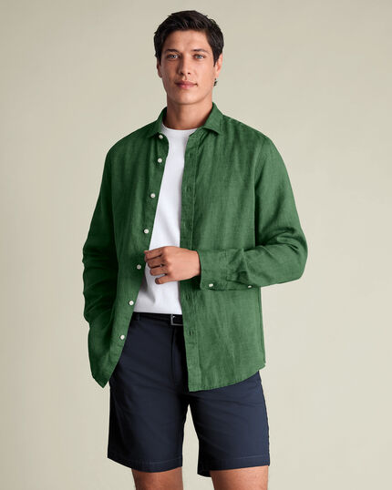 Pure Linen Shirt - Greenhttps://www.charlestyrwhitt.com/on/demandware.static/-/Sites-ctshirts-master/default/dw7fc8a08e/CSH/CSH0022GRN/CSH0022GRN_MODEL_UNTUCKED_01.jpgCSH0022GRNCrafted from lightweight pure linen – a naturally breathable fabric that absorbs moisture and helps you stay cool.https://www.charlestyrwhitt.com/uk/pure-linen-shirt---green/CSH0022GRN.htmlGBP74.95InStock00