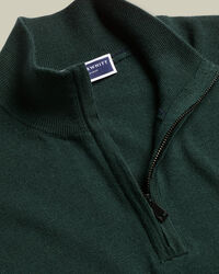 Pure Merino Half Zip Jumper - Forest Greenhttps://www.charlestyrwhitt.com/on/demandware.static/-/Sites-ctshirts-master/default/dw1792d178/hi-res/CT/KNJ0321FRG_MODEL_FRONT.jpgKNJ0321FRGKnown as nature's performance fabric, Merino is comfortably breathable and temperature regulating - and has the softest handle of any knitwear. We've gently washed it for an even silkier finish, resulting in a supple jumper that subtly moulds itself to your body. The styling is simple, letting the fine fibres take centre stage. There's traditional ribbing on the cuffs and hem and the understated neckline means this jumper looks superb when worn with a button-down shirt.https://www.charlestyrwhitt.com/uk/pure-merino-half-zip-jumper---forest-green/KNJ0321FRG.htmlGBP79.95InStock4.80130