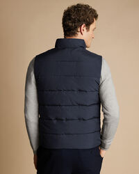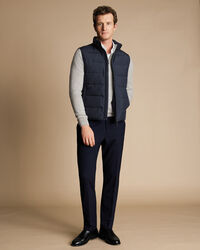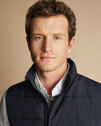 Quilted Gilet - Navyhttps://www.charlestyrwhitt.com/on/demandware.static/-/Sites-ctshirts-master/default/dw643c9d5f/hi-res/OUC0075NAV_MODEL_FULL.jpgOUC0075NAVYou know what it's like – you need to layer up on a cold day but don't want to feel bulky. In which case, you'll be pleased to meet our new gilet, made with technical fabric and featuring a lightweight filling inside its classic horizontal quilting. On extra-cold days, raise the standing collar and slip your hands into the slanted side pockets. Our lapwing logo adds just a touch of detail to this understated design.https://www.charlestyrwhitt.com/uk/quilted-gilet---navy/OUC0075NAV.htmlGBP79.95OutOfStock4.7098