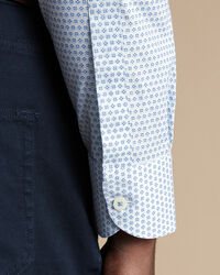 Semi-Cutaway Collar Non-Iron Stretch Floral Geo Print Shirt - Cobalt Bluehttps://www.charlestyrwhitt.com/on/demandware.static/-/Sites-ctshirts-master/default/dwace34c3b/hi-res/CSB0242COB_MODEL_FULL.jpgCSB0242COBMake an entrance – and start a conversation – with a printed shirt that has plenty to say for itself. With its characterful geometric pattern, our versatile, non-iron style can be dressed up or down. Featuring navy back neck piping and contrast trimming detailing, our pure cotton makes for an airy feel and a smooth matt finish. Take a closer look at the print and choose a colour that will perfectly complement your favourite tie or knitwear.https://www.charlestyrwhitt.com/uk/semi-cutaway-collar-non-iron-stretch-floral-geo-print-shirt---cobalt-blue/CSB0242COB.htmlGBP24.95OutOfStock526