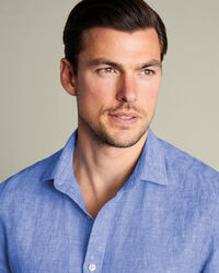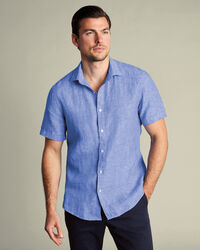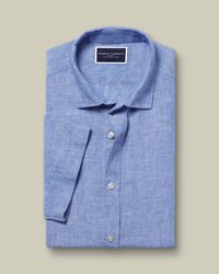 Short Sleeve Pure Linen Shirt - Cobalt Bluehttps://www.charlestyrwhitt.com/on/demandware.static/-/Sites-ctshirts-master/default/dw18d49e00/hi-res/CASUAL_SHIRTS/CT/CSR2056COB_MODEL_UNTUCKED.jpgCSR2056COBCrafted from lightweight pure linen – a naturally breathable fabric that absorbs moisture and helps you stay cool. We've cut this shirt to a slim fit for a streamlined finish, and a garment wash gives it a pleasingly soft feel.https://www.charlestyrwhitt.com/uk/short-sleeve-pure-linen-shirt---cobalt-blue/CSR2056COB.htmlGBP74.95InStock4.80875