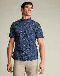 Short Sleeve Stretch Washed Poplin Floral Shirt - Mid Bluehttps://www.charlestyrwhitt.com/on/demandware.static/-/Sites-ctshirts-master/default/dw184e73b6/CSM/CSM0032MBU/CSM0032MBU_MODEL_FRONT_01.jpgCSM0032MBUThey’re made from 100% cotton poplin with natural stretch, giving you lightweight comfort and easy movement. We’ve washed the fabric for softness from the first wear, so the shirts feel relaxed while keeping a polished look. Design details include a neat button-down collar, a spade-shaped chest pocket, and a single back yoke. Created exclusively in-house, the collection offers intricate florals and conversational prints to bring individuality to smart-casual dressing.https://www.charlestyrwhitt.com/uk/short-sleeve-stretch-washed-poplin-floral-shirt---mid-blue/CSM0032MBU.htmlGBP69.95InStock00