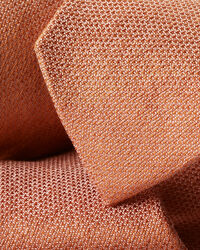 I love this tie. It's 67% silk, 33% linen and it goes well with both casual wear and formal wear. It's color is kinda peachy-orange, subtle and yet striking with a blue shirt. You can see a nice texture/pattern from a closer look. I'll enjoy wearing it.