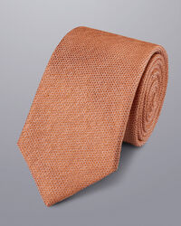 Silk Linen Tie - Orangehttps://www.charlestyrwhitt.com/on/demandware.static/-/Sites-ctshirts-master/default/dwdec85d36/hi-res/TIC2068ORG_ROLLED.jpgTIC2068ORGReach for our silk-and-linen blend tie when you're looking for a sophisticated option. This lightweight fabric has an elegant sheen and a supple feel – ideal for both everyday wear and special occasions. Thoughtful details include a keeper loop to secure the tail end. There's also a secret recovery loop that allows the fabric to move when knotted, then spring back into shape after wear.https://www.charlestyrwhitt.com/uk/silk-linen-tie---orange/TIC2068ORG.htmlGBP19.95OutOfStock51