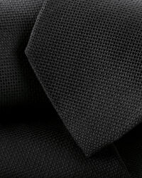 We've treated our textured tie with a high-tech finish so liquid simply rolls right off, minimising staining. Great news for those breakfast meetings and quick coffees on the train. The supple texture of the silk ensures the tie drapes superbly. We've taken its impeccable look to the next level by adding a hidden loop that holds the tail neatly in place. This hand-finished style has an 8 cm blade, so it works with most collars.