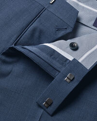 Ultimate Performance Prince of Wales Suit Trousers – Ink Bluehttps://www.charlestyrwhitt.com/on/demandware.static/-/Sites-ctshirts-master/default/dwf7bc37c9/hi-res/SUT0335NKB_TROUSER_FRONT_01.jpgSUT0335NKBThe Super 120s Merino wool construction wins top marks for crease recovery, ensuring it stays sharp until the moment you take it off. Not only that – it also offers plenty of natural stretch. It's breathable, temperature-regulating and durable, too. The jacket is cut to a single-breasted silhouette, with a half-canvas construction for an impeccable fit. Plus, we’ve added working button cuffs so you can easily roll up the sleeves. Look closely, and you'll spot a pop of colour on the split melton undercollar. We’ve given the flat-fronted trousers a comfortable curved waistband.https://www.charlestyrwhitt.com/uk/ultimate-performance-prince-of-wales-suit-trousers-%E2%80%93-ink-blue/SUT0335NKB.htmlGBP150.00InStock00