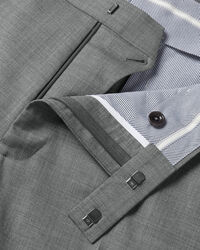 Ultimate Performance Sharkskin Suit Trousers - Greyhttps://www.charlestyrwhitt.com/on/demandware.static/-/Sites-ctshirts-master/default/dw57c79ac6/hi-res/SUT0314GRY_TROUSER_FRONT.jpgSUT0314GRYOur sharkskin suit looks polished, even when you're on the move. Crafted from pure Super 120s wool with natural stretch, it's durable and crease-resistant – perfect for all-day wear. The jacket is cut to a classic single-breasted silhouette, with a half-canvas construction for an impeccable fit. Plus, we’ve added working button cuffs so you can easily roll up the sleeves. We’ve given the flat-fronted trousers a comfortable curved waistband, while the waistcoat features functional welt pockets – perfect for stashing those essentials.https://www.charlestyrwhitt.com/uk/ultimate-performance-sharkskin-suit-trousers---grey/SUT0314GRY.htmlGBP150.00InStock4.7014