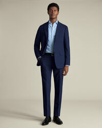 The Super 120s Merino wool construction wins top marks for crease recovery, ensuring it stays sharp until the moment you take it off. Not only that – it also offers plenty of natural stretch. It's breathable, temperature-regulating and durable, too.The jacket is cut to a classic single-breasted silhouette, with a half-canvas construction for an impeccable fit. Plus, we’ve added working button cuffs so you can easily roll up the sleeves. Look closely, and you'll spot a pop of colour on the split melton undercollar. We’ve given the flat-fronted trousers a comfortable curved waistband.