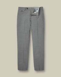 Wool Stretch Trousers - Grey https://www.charlestyrwhitt.com/on/demandware.static/-/Sites-ctshirts-master/default/dw75f6b59d/hi-res/TRT0446GRY_MODEL_FULL_FRONT.jpg TRT0446GRY Get ready for the colder season with our new wool stretch trousers. They're machine washable for easy maintenance, with a wrinkle-free finish to keep them looking crisp. These wardrobe staples offer warmth yet feel lightweight and comfortable to wear. Meanwhile, 4-way stretch fabric and interlining in the waistband ensure optimal recovery while allowing for maximum movement. We've added pressed creases for a neatly tailored look, plus practical side pockets and a buttoned ticket pocket for extra convenience. This sophisticated pair comes in versatile grey hues, so they'll easily slot into your existing edits. https://www.charlestyrwhitt.com/uk/wool-stretch-trousers---grey/TRT0446GRY.html GBP 99.95 InStock 4.70 12