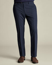 Wool Stretch Trousers - Ink Blue https://www.charlestyrwhitt.com/on/demandware.static/-/Sites-ctshirts-master/default/dw283c768c/hi-res/TRT0446NKB_MODEL_FULL_FRONT.jpg TRT0446NKB Get ready for the colder season with our new wool stretch trousers. They're machine washable for easy maintenance, with a wrinkle-free finish to keep them looking crisp. These wardrobe staples offer warmth yet feel lightweight and comfortable to wear. Meanwhile, 4-way stretch fabric and interlining in the waistband ensure optimal recovery while allowing for maximum movement. We've added pressed creases for a neatly tailored look, plus practical side pockets and a buttoned ticket pocket for extra convenience. This sophisticated pair comes in versatile grey hues, so they'll easily slot into your existing edits. https://www.charlestyrwhitt.com/uk/wool-stretch-trousers---ink-blue/TRT0446NKB.html GBP 99.95 InStock 4.90 16