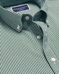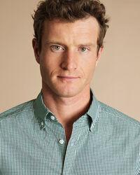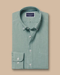 Button-Down Collar Non-Iron Stretch Poplin Gingham Shirt - Greenhttps://www.charlestyrwhitt.com/on/demandware.static/-/Sites-ctshirts-master/default/dw9eb2535a/hi-res/CSN0514GRN_MODEL_UNTUCKED.jpgCSN0514GRNThere's lots to love about our non-iron stretch poplin shirts, from the lightweight weave – perfect for warmer days or staying cool while layering – to the pure cotton yarn with natural stretch for added comfort. Our legendary non-iron finish doesn't go amiss either, taking you creaseless-ly from work to weekend or day to night.