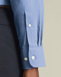 Button-Down Stretch Washed Poplin Shirt – Cornflower Bluehttps://www.charlestyrwhitt.com/on/demandware.static/-/Sites-ctshirts-master/default/dw0e2bf56a/CSC/CSC0046CFW/CSC0046CFW_MODEL_TUCKED_01.jpgCSC0046CFWPoplin has long been a tailoring favourite thanks to its smooth weave and clean appearance. This shirt takes things further with natural stretch for easy movement and a garment wash that delivers softness and comfort from the first wear. Details include a neat button-down collar, chest pocket, and a single back yoke, with a back neck button that nods to tradition.https://www.charlestyrwhitt.com/us/button-down-stretch-washed-poplin-shirt-%E2%80%93-cornflower-blue/CSC0046CFW.htmlUSD96.75InStock00