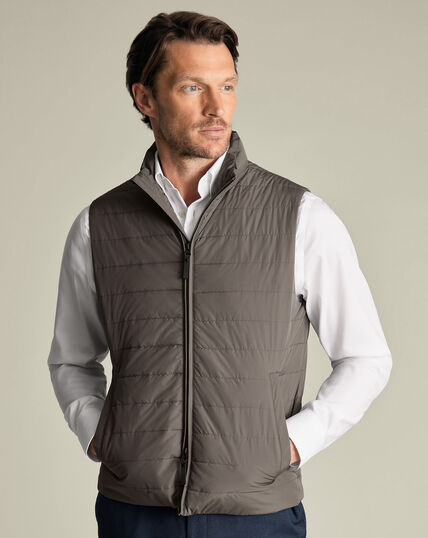 Our light-as-a-feather quilted vest promises to be the ultimate casual companion. Why? It's crafted with a water-resistant shell to shield you from unexpected showers, meaning you’ll stay snug and dry from the rugby game to the pub (and beyond). For a sporty, wear-all-weekend look, slip yours over a classic polo, denim jeans and trainers.