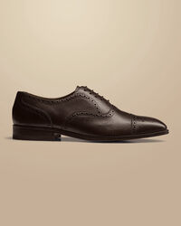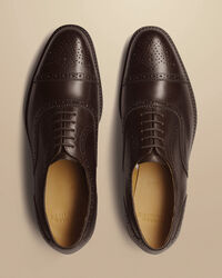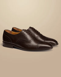 Leather Oxford Brogue Shoe - Dark Chocolatehttps://www.charlestyrwhitt.com/on/demandware.static/-/Sites-ctshirts-master/default/dw941dc70a/hi-res/SHC0248MBR_SIDE.jpgSHC0248MBRNo wardrobe is complete without a pair of Oxfords. Possibly the most versatile shoes a man can own, they bring a polished yet understated feel to your ensembles. We've crafted this style using the finest calf leather for a breathable and durable finish. Inside, we've added a filler to the sole, which moulds to your feet to ensure a supremely comfortable fit.https://www.charlestyrwhitt.com/us/leather-oxford-brogue-shoe---dark-chocolate/SHC0248MBR.htmlUSD169.00OutOfStock00