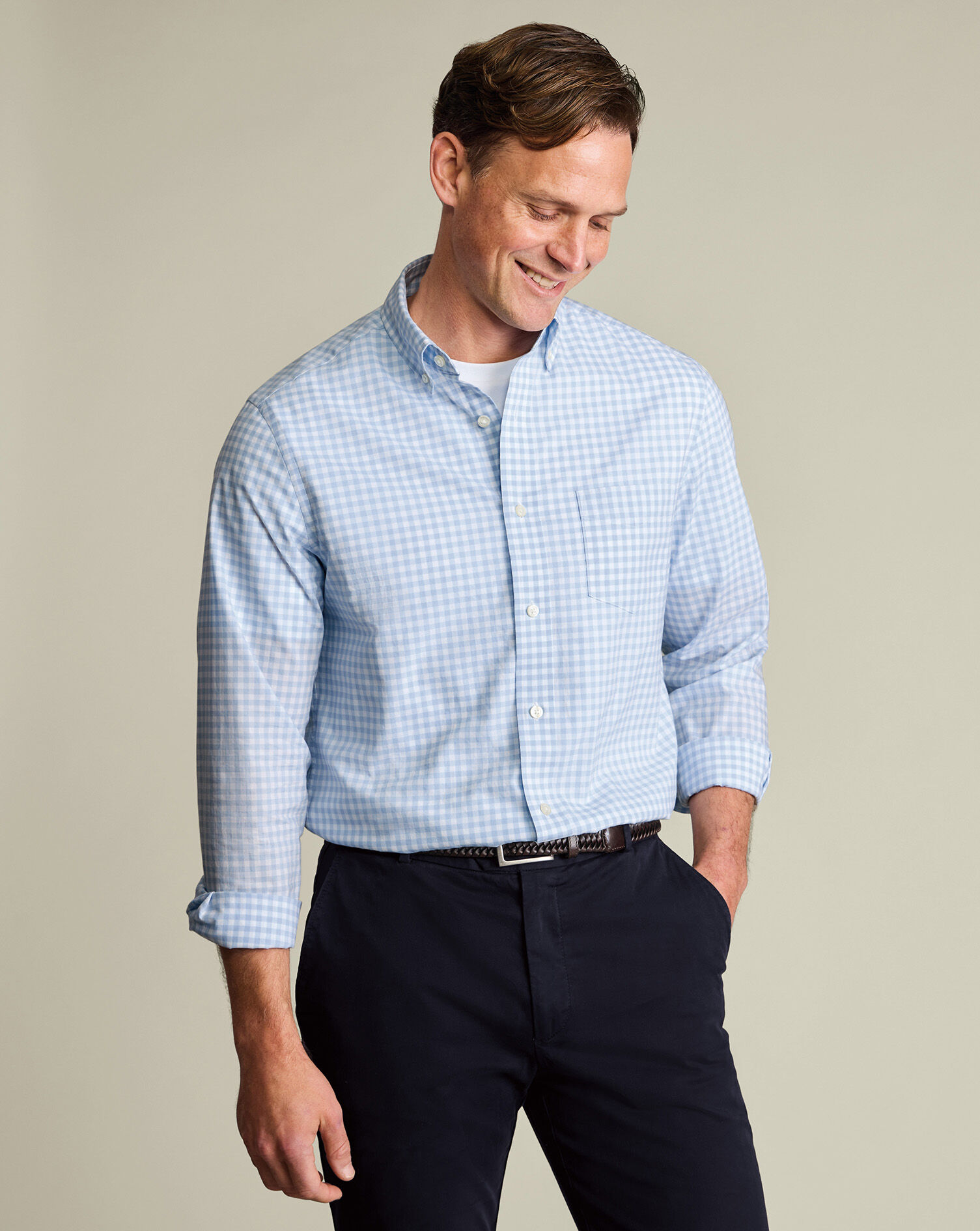 With button cuffs, relaxed collars, and a cut that looks just as dashing tucked or untucked, Charles Tyrwhitt casual shirts represent the laidback branch of our shirts collection. Pair your business casual shirt with chinos or a smart blazer to complete your working wardrobe.