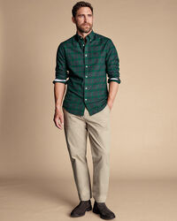 Show off the Jets team colours in this casual hero. Designed in-house in London, the check comes in dark green and grey for a relaxed yet refined look. Crafted from pure cotton, it has natural stretch and breathability for ultimate comfort. Each button has a pop of deep green stitching, and the understated New York Jets logo features on the chest. We've also garment-washed this piece to give it a feeling of superior softness, and the Tyrwhitt lapwing bird is just under the back of the collar. In short; this is one elegant way to show your support.