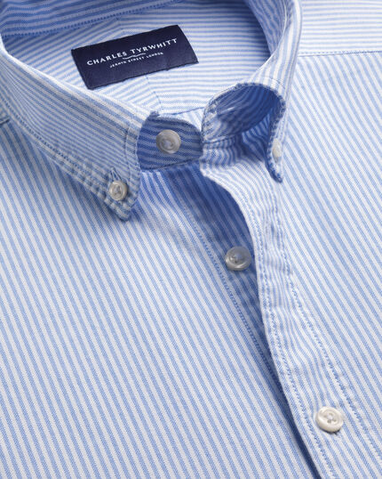 Short Sleeve Button-Down Stretch Washed Oxford Stripe Shirt – Ocean Bluehttps://www.charlestyrwhitt.com/on/demandware.static/-/Sites-ctshirts-master/default/dw1a708cc2/CSC/CSC0055OCE/CSC0055OCE_COLLAR_DETAIL_02.jpgCSC0055OCEThis pure cotton shirt has plenty of natural stretch and flexibility – made for work-to-play comfort. We gave the classic Oxford weave a garment wash, providing you with supreme softness. Final touches like the button-down collar give the casual silhouette a wear-me-anywhere versatility. Just pair it with tonal chinos for a suave look.https://www.charlestyrwhitt.com/us/short-sleeve-button-down-stretch-washed-oxford-stripe-shirt-%E2%80%93-ocean-blue/CSC0055OCE.htmlUSD86.87InStock00