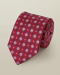 Silk Geo Print Tie - Redhttps://www.charlestyrwhitt.com/on/demandware.static/-/Sites-ctshirts-master/default/dwc6203b32/hi-res/TIL0666RED_ROLLED.jpgTIL0673REDAdd refinement to your outfit with an elegant tie spun from pure silk. Each one features a lustrous canvas that makes their patterns pop. Plus, every tie is hand-finished and thoughtfully detailed. This is how you take your look to the next level. You'll find every tie has an 8cm blade for timeless style. We've even added self-fabric keepers so that the tail stays neatly in place. They come in a range of vibrant and muted tones that'll seamlessly work with your favourite tailoring.https://www.charlestyrwhitt.com/us/silk-geo-print-tie---red/TIL0673RED.htmlUSD63.20OutOfStock00