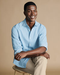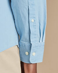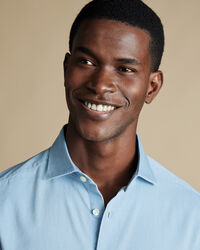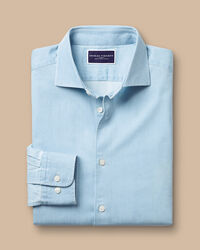 Spread Collar Denim Shirt - Light Bluehttps://www.charlestyrwhitt.com/on/demandware.static/-/Sites-ctshirts-master/default/dwbb0e4d87/hi-res/CSR2119LBU_MODEL_UNTUCKED.jpgCSR2119LBUWhen a weekend of back-to-back social events lies ahead, your first stop is this true denim shirt. It's crafted from garment-washed cotton, giving it a soft feel, while the mid-weight weave offers year-round styling potential. We've chosen a classic blue shade for an understated look. Try styling this shirt over a plain white tee, leaving the top couple of buttons unfastened to add to the casual feel. A relaxed cutaway collar seals the deal in style.https://www.charlestyrwhitt.com/us/spread-collar-denim-shirt---light-blue/CSR2119LBU.htmlUSD49.75OutOfStock4.5033