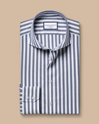 Spread Collar Non-Iron Twill Wide Stripe Shirt - Royal Bluehttps://www.charlestyrwhitt.com/on/demandware.static/-/Sites-ctshirts-master/default/dw16fc00bd/hi-res/FON2563RYL_COLLAR_DETAIL.jpgFON2563RYLWith its distinctive diagonal textured weave and smooth, silky finish that feels supremely comfortable against the skin, it's no shock that this is our most popular weave. The convenient non-iron finish might have something to do with it, too.