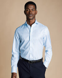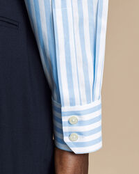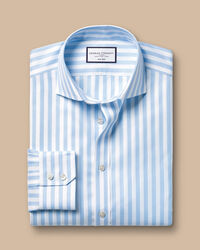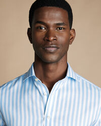 Spread Collar Non-Iron Twill Wide Stripe Shirt - Sky Bluehttps://www.charlestyrwhitt.com/on/demandware.static/-/Sites-ctshirts-master/default/dwe9a685dc/hi-res/FON2563SKY_COLLAR_DETAIL.jpgFON2563SKYCrafted from 100% mid-weight cotton, this twill-weave shirt is comfortable and breathable all year round. Its non-iron finish makes it a fuss-free ready-to-wear piece, while the split-back yoke construction ensures freedom of movement. A firm Tyrwhitt favourite, this twill shirt features a distinctive stripe pattern with a silky, smooth finish. Complimentary brass stays complete the sophisticated look by keeping your collar neatly in place.https://www.charlestyrwhitt.com/us/spread-collar-non-iron-twill-wide-stripe-shirt---sky-blue/FON2563SKY.htmlUSD49.75OutOfStock4.70142