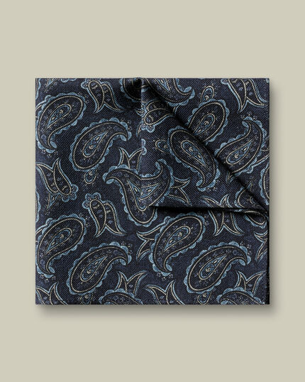 Wool Paisley Pocket Square - Navyhttps://www.charlestyrwhitt.com/on/demandware.static/-/Sites-ctshirts-master/default/dw8ecfcafc/hi-res/TIP0320NAV_MAIN.jpgTIP0326NAVThis piece feels luxurious to the touch. Pair this pocket square with the matching tie for a coordinated look, or choose contrasting tones for a bolder style. A dark-toned jacket will help to ensure that the pattern stands out.https://www.charlestyrwhitt.com/us/wool-paisley-pocket-square---navy/TIP0326NAV.htmlUSD19.00InStock